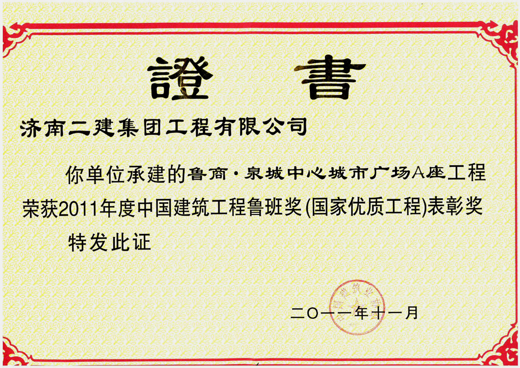 魯商?泉城中心城市廣場(chǎng)A座工程(魯班表彰獎(jiǎng))
