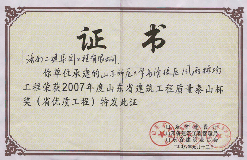 山東師范大學長清校區(qū)風雨操場榮獲“泰山杯”質(zhì)量榮譽